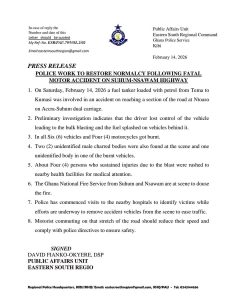 The statement was released and signed by David Fianko-Okyere, DSP, Public Affairs Unit, Eastern South Region.